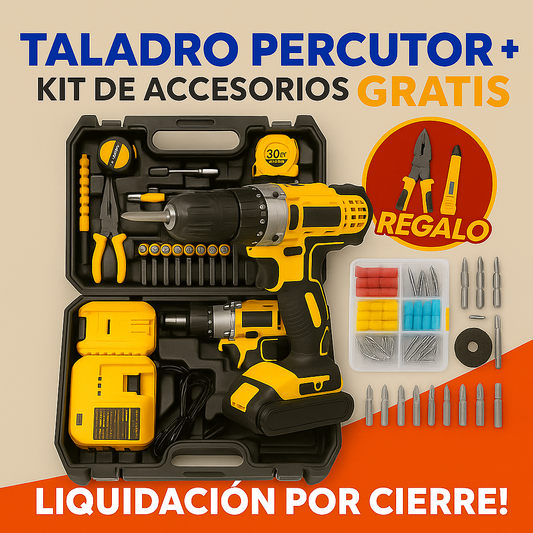 Taladro Percutor + Kit de Accesorios GRATIS (LIQUIDACIÓN POR CIERRE)